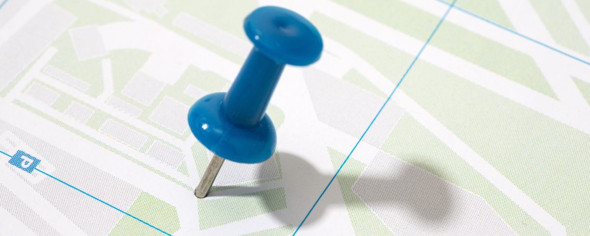 A single blue pin marks a specific location on a detailed map.